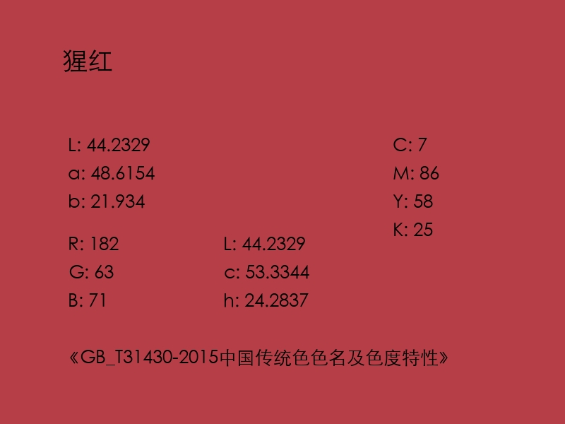44.23 / 48.62 / 21.93 RGB: 182 / 63 / 70 CMYK: 7 / 86 / 58 / 25 HEX: #B63F46 |