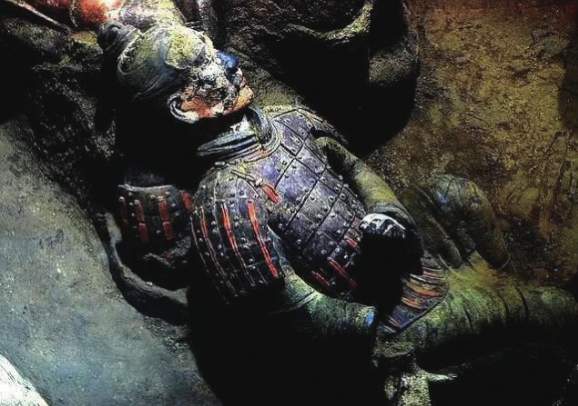 ▲ 兵马俑出土现场(颜色尚未褪去)