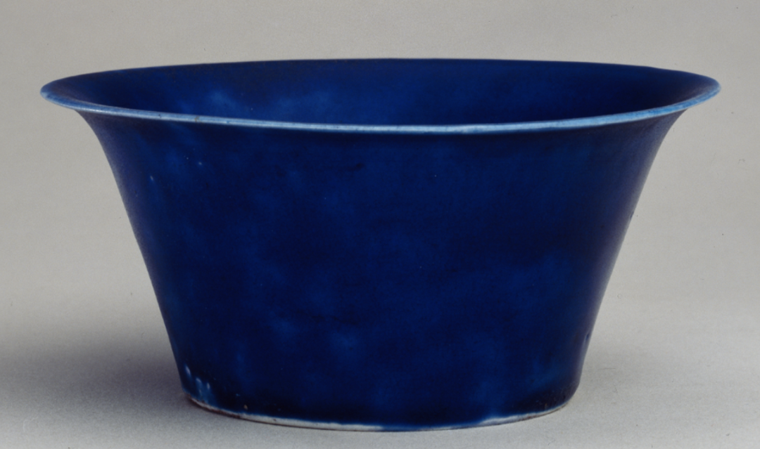 蓝釉最早见于唐三彩中。但这时还是低温蓝釉,高温蓝釉的出现是在元代。入明以后,特别是在宣德时,蓝釉器物多而质美。至清康熙时,更出现洒蓝釉、天蓝等多种新品种。