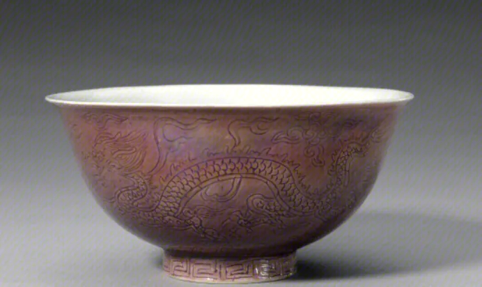 ▲ 明 万历款淡茄皮紫釉锥拱云龙纹碗—北京故宫博物院馆藏
