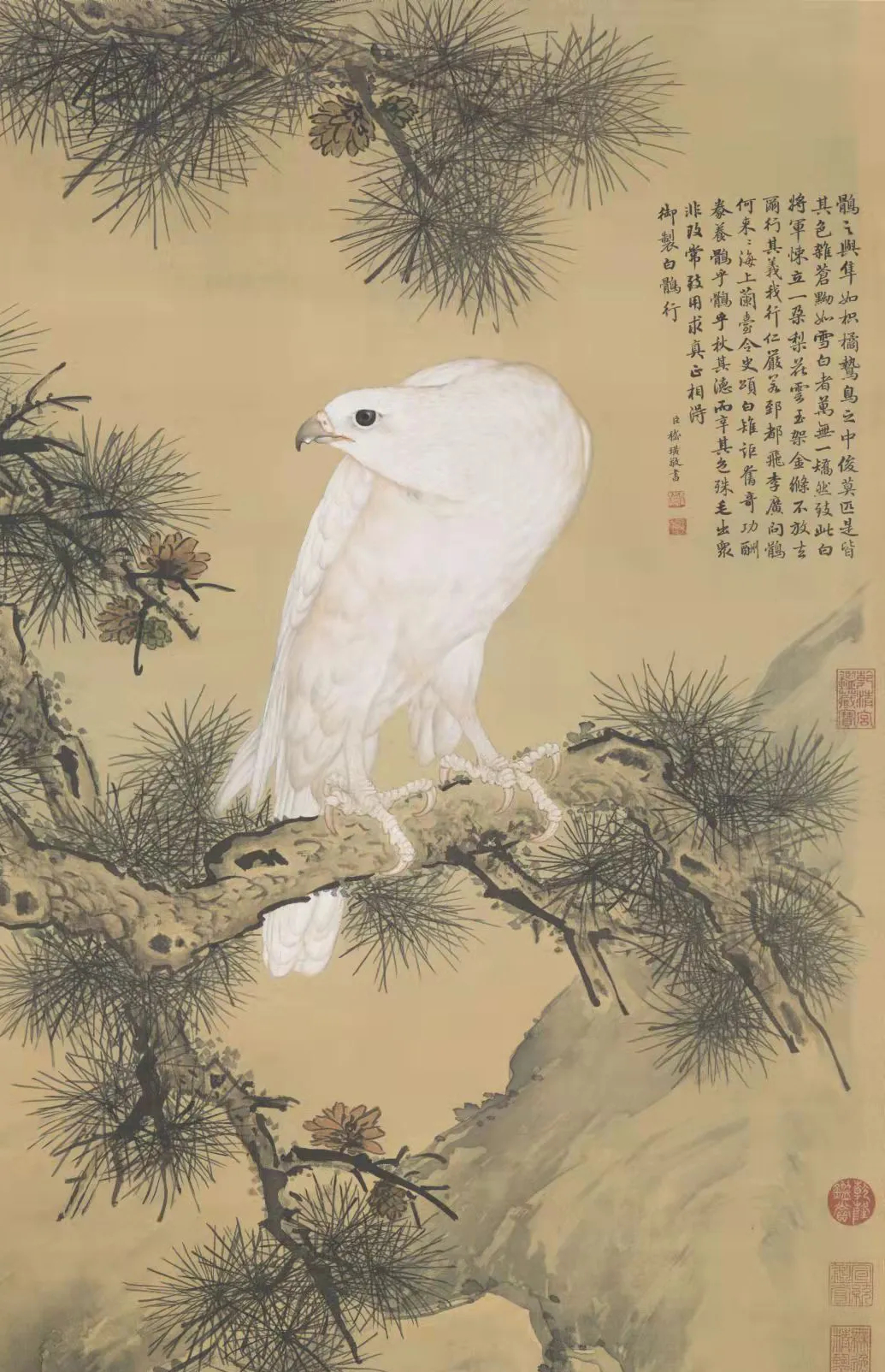 清·郎世宁《白鹘图》(局部),为纪念大学士傅恒向乾隆皇帝进献白鹘所作,现藏台北故宫博物馆