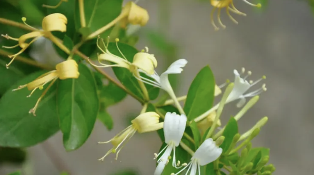 ▲ 忍冬花初开为白色,后转为黄色,因此得名“金银花”。该命名融合了色彩外观观察与吉祥文化符号,始载于宋代《苏沈内翰良方》。